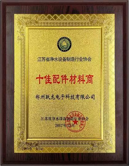 随后,江苏省净水设备制造行业协会对行业优秀品牌进行表彰,树立标杆、引导消费。郑州jrs直播电子科技有限公司凭借良好的市场口碑和品牌满意度脱颖而出,斩获 "十佳配件材料商"殊荣。