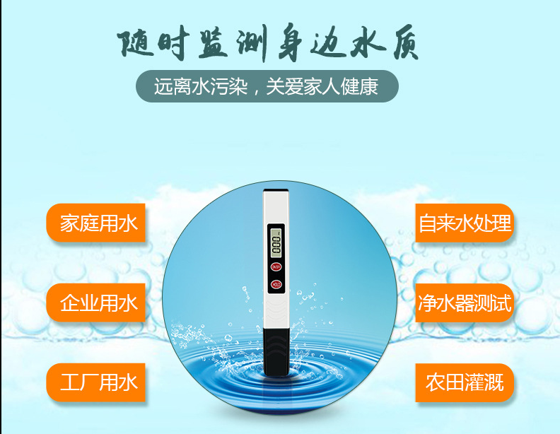 TDS监测笔:手持式监测笔,使用方便,可直接监测所取水样的TDS值,TDS数值将通过TDS笔的屏幕中显示。