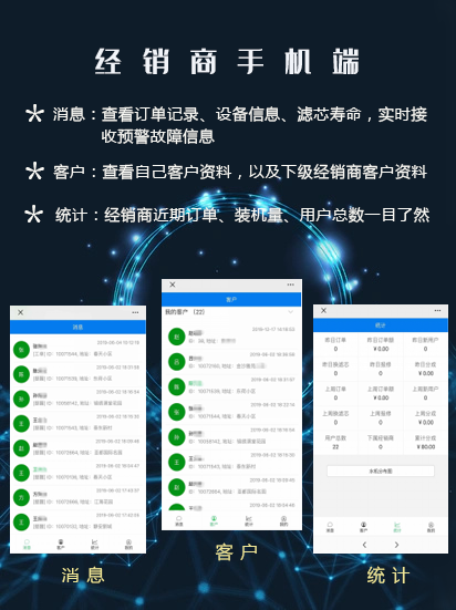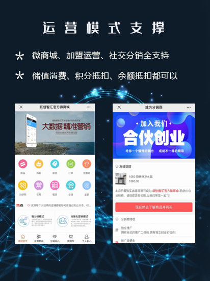 无论您的净水方向是租赁还是共享业务,不管您的运营模式是加盟分销还是社交分销,也不论是扫码支付还是储值卡扣费,我们都提供一套完整的体系来支撑您。